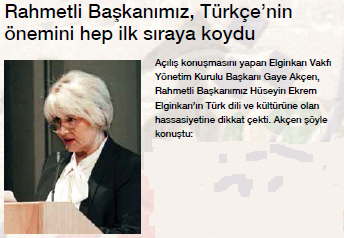 Açılış konuşmasını yapan Elginkan Vakfı Yönetim Kurulu Başkanı Gaye Akçen, Rahmetli Başkanımız Hüseyin Ekrem Elginkan’ın Türk dili ve kültürüne olan hassasiyetine dikkat çekti. Akçen şöyle konuştu:
