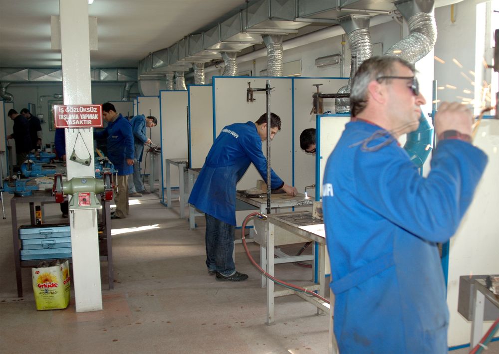 A,B,C Bloklarından oluşan kapalı alan, bodrum kat, zemin kat ve birinci katı kapsamaktadır. B Blokta Bilgisayar (3 adet), Hidrolik - Pnömatik, Endüstriyel Otomasyon, Isıtma Teknolojileri, Elektrik Elektronik, Mekanik Bakım ve Ölçme Kontrol, Ev Cihazları, Sıhhi Tesisat ve Armatür, İlkyardım Laboratuarları, Teknik Resim Salonu, Kaynak Atölyesi, Kalıp Atölyesi, Eğitim Salonu (5 adet), Sağlık Odası ve Yemek Salonu bulunmaktadır. A ve C Blokta idari bürolar, Konferans Salonu, Kütüphane, Kantin & Kafeterya, arşiv gibi bölümler bulunmaktadır.